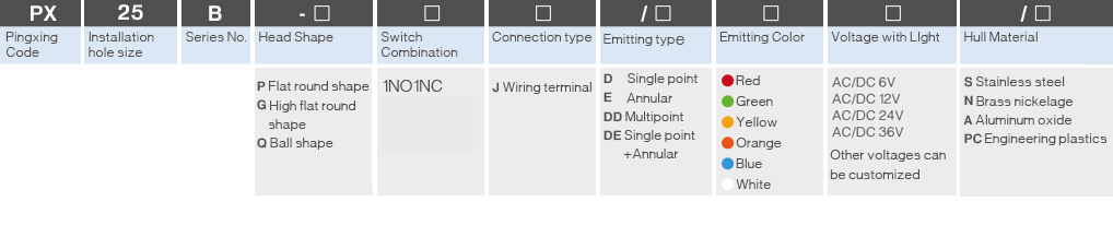 Emitting Color: ●R Red ●G Green ●Y Yellow ●O Orange ●B Blue ●W White